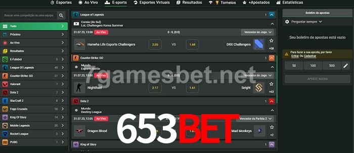 O 653bet oferece uma grande seleção de opções de apostas em e-sports com probabilidades competitivas